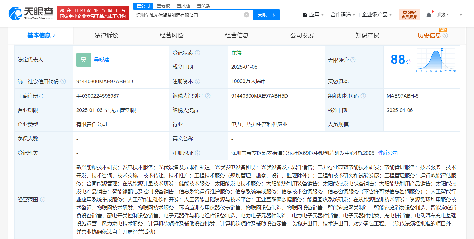 天眼查App显示,近日,深圳创维光伏智慧能源有限公司成立,法定代表人为吴晓建,注册资本1亿人民币,经营范围含新兴能源技术研发、发电技术服务、储能技术服务、信息技术咨询服务、人工智能行业应用系统集成服务、人工智能基础软件开发、人工智能基础资源与技术平台、工业互联网数据服务等。股东信息显示,该公司由深圳创维光伏科技有限公司、深圳汇致投资合伙企业(有限合伙)、深圳汇同投资合伙企业(有限合伙)共同持股。