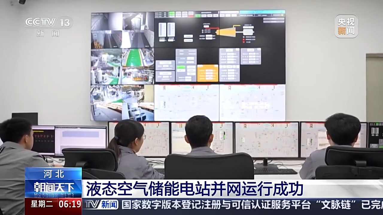 在位于河北石家庄的液态空气储能电站,工作人员在指挥调度中心内,密切监测设备的运行情况。经过三个月的满负荷试运行,圆满完成并网发电与试运行任务。