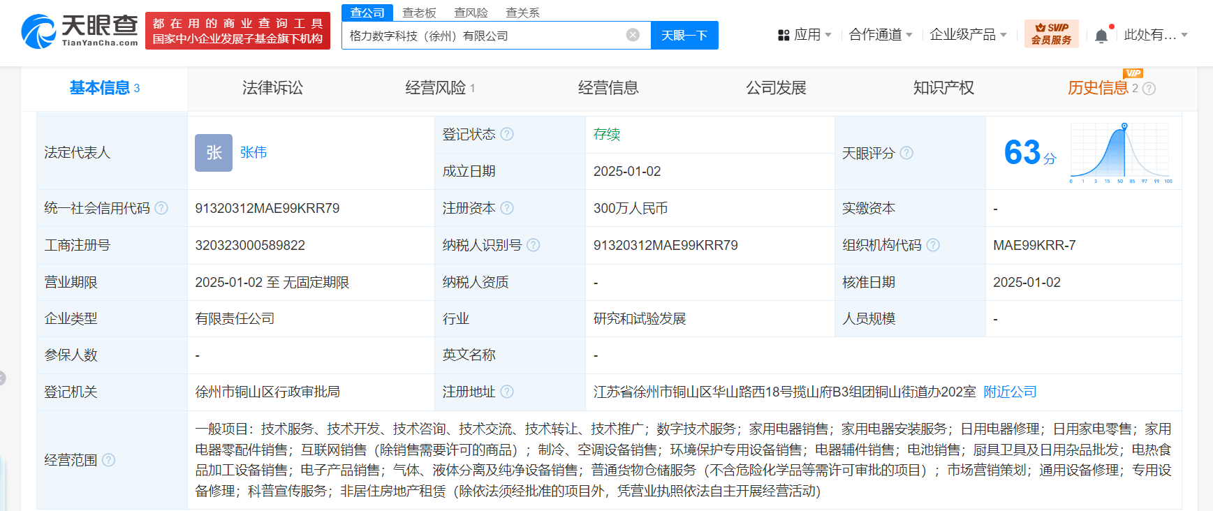 天眼查App显示,近日,格力数字科技(徐州)有限公司、格力数字科技(河南)有限公司成立,法定代表人均为张伟,注册资本分别为300万人民币、100万人民币,经营范围均包含家用电器销售、互联网销售、空调设备销售、电热食品加工设备销售、普通货物仓储服务等。股权全景穿透图显示,上述两公司均由珠海格力数字科技有限公司全资持股,后者为格力电器(000651)全资子公司。值得一提的是,近期,格力电器已在河北、湖南等多地成立数字科技公司。