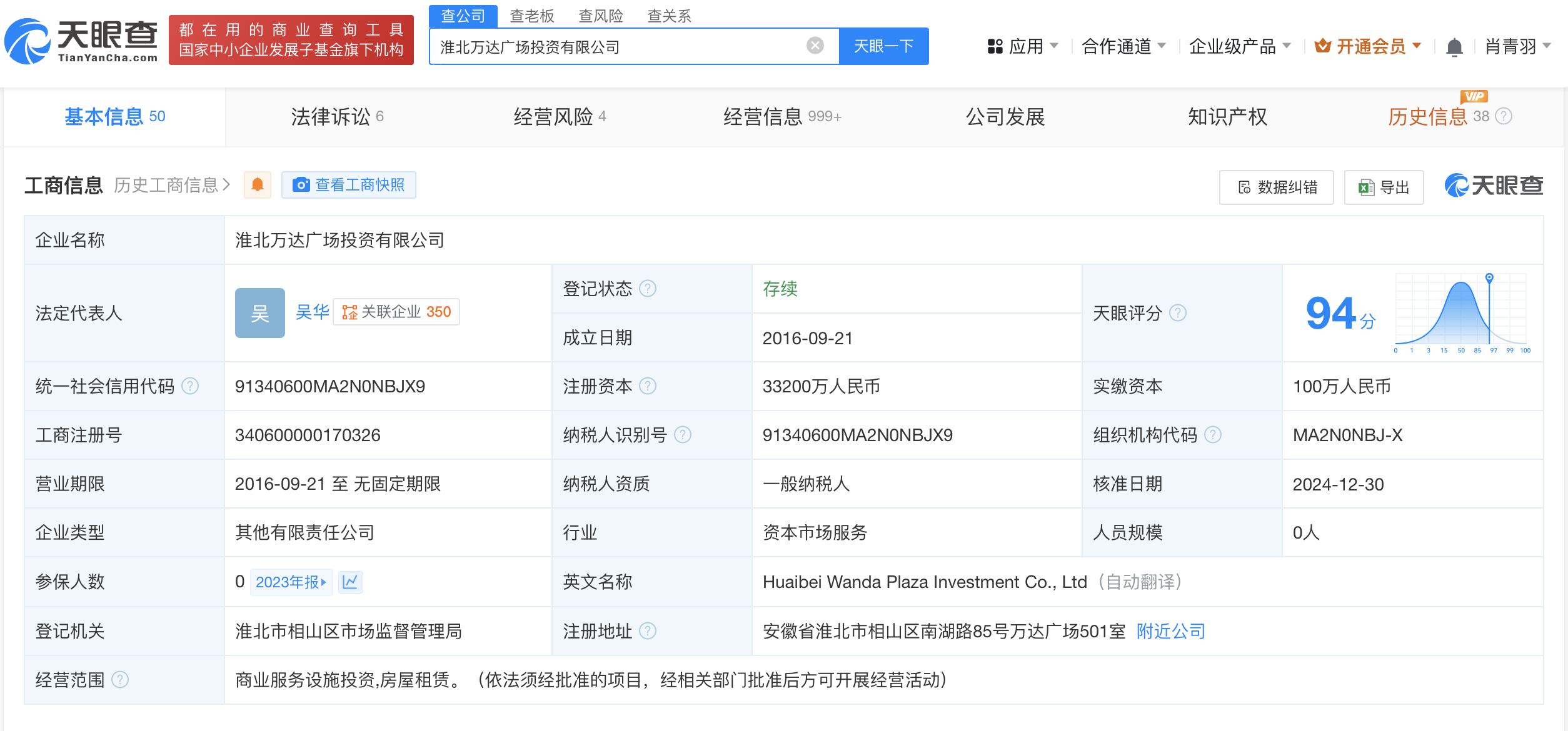 值得一提的是,股权全景穿透图显示,淮北万达广场投资有限公司新增全资股东坤华(天津)股权投资合伙企业(有限合伙)由新华保险(601336)、中金资本运营有限公司分别持股99.9%、0.1%。此前,坤华(天津)股权投资合伙企业(有限合伙)已接盘万达旗下多家公司。