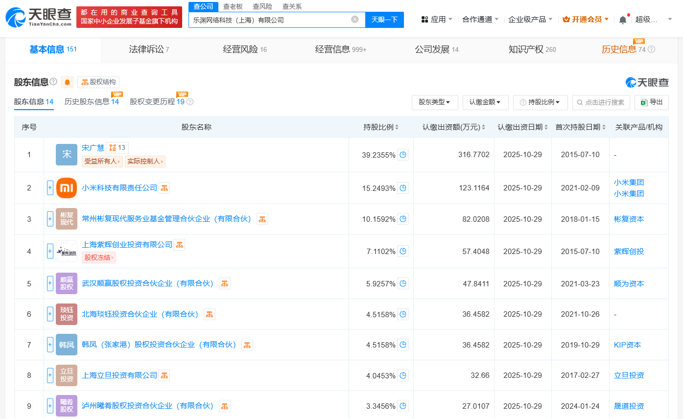 天眼查App显示,小米科技有限责任公司为“AIDONG SPORT”关联公司乐渊网络科技(上海)有限公司股东,持股比例月15%。后者成立于2013年11月,法定代表人为宋广慧,注册资本约807万人民币。公开资料显示,“AIDONG SPORT”是国内领先的运动科技公司,以科技创新赋能健身行业的发展。