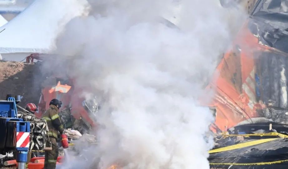 当地时间1月2日获悉,当天13时57分左右,韩国调查人员在调查济州航空失事客机现场时,机体残骸起火。消防部门随即展开灭火工作,迅速将火扑灭,没有造成人员伤亡。