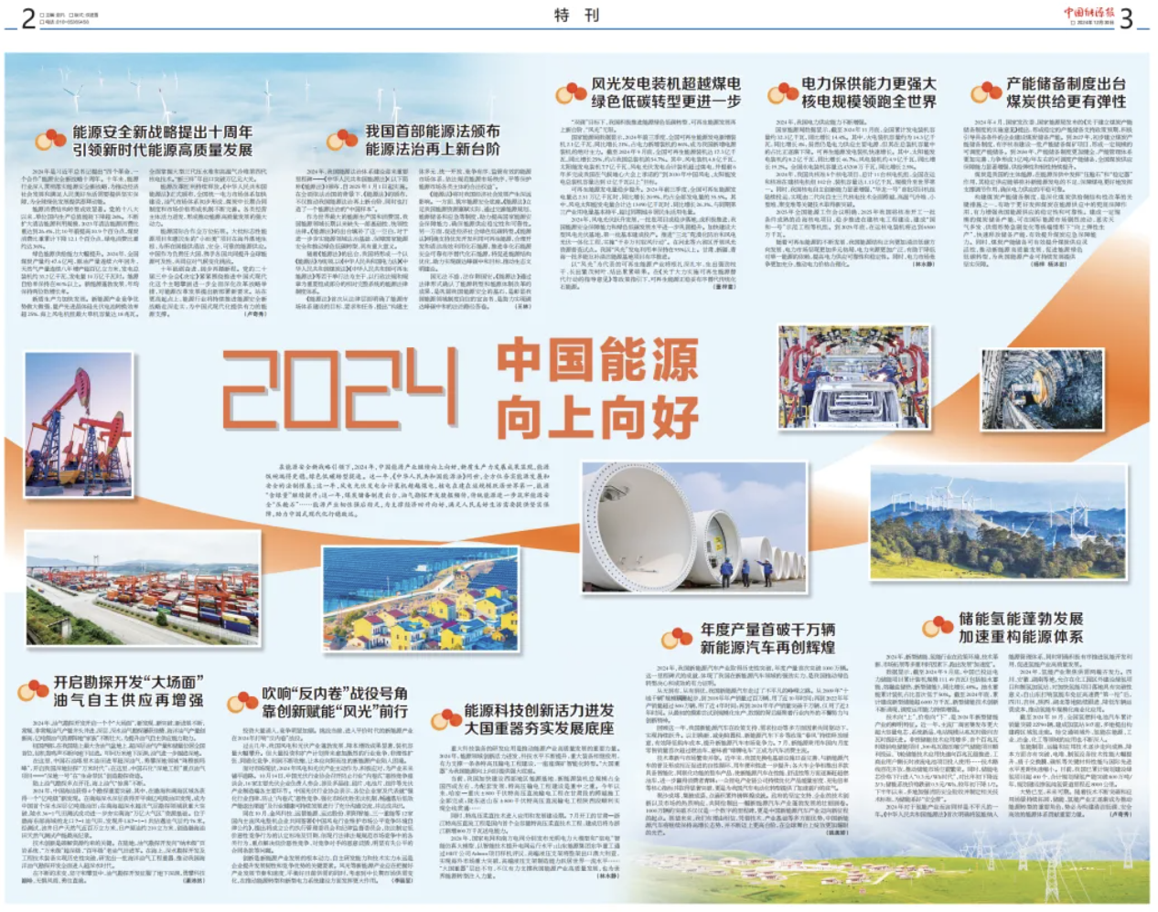 在能源安全新战略引领下,2024年,中国能源产业继续向上向好,新质生产力发展成果显现,能源饭碗端得更稳,绿色低碳转型提速。这一年,《中华人民共和国能源法》问世,全方位夯实能源发展和安全的法制根基;这一年,风电光伏发电合计装机超越煤电,核电在建在运规模跃居世界第一,能源“含绿量”继续提升;这一年,煤炭储备制度出台、油气勘探开发捷报频传,传统能源进一步筑牢能源安全“压舱石”……能源产业韧性强后劲足,为支撑经济回升向好、满足人民美好生活需要提供坚实保障,助力中国式现代化行稳致远。