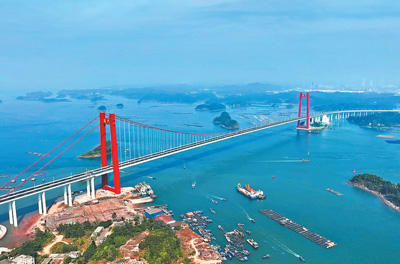 图为12月29日,广西最长跨海大桥龙门大桥建成通车。