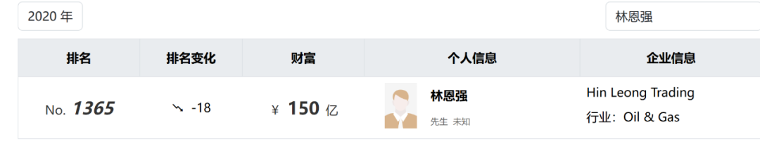 在2020年的胡润全球富豪榜上,林恩强的身家达到150亿元人民币。