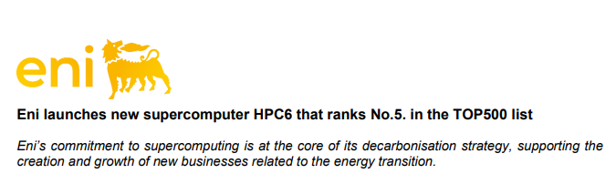 据媒体报道,意大利能源巨头埃尼公司(Eni)将于本日启动全球最大之一的超级计算系统“HPC6”。
