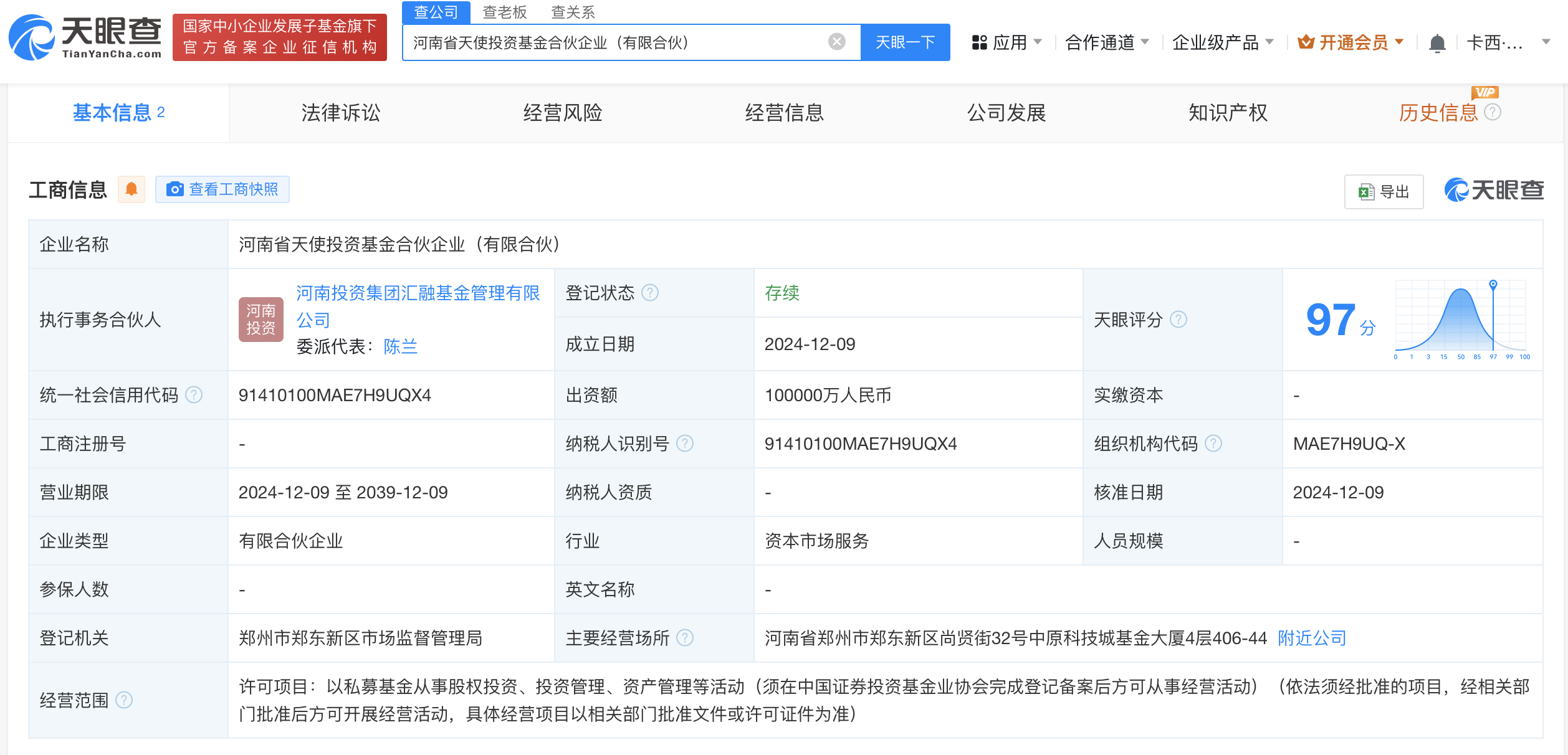 天眼查App显示,近日,河南省天使投资基金合伙企业(有限合伙)成立,执行事务合伙人为河南投资集团汇融基金管理有限公司,出资额10亿人民币,经营范围为以私募基金从事股权投资、投资管理、资产管理等活动。合伙人信息显示,该基金由河南投资集团汇融基金管理有限公司、河南投资集团有限公司共同出资。