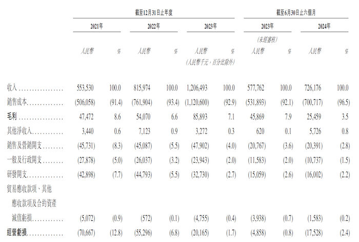 一方面,盛威时代的毛利率有所下滑,从2021年的8.6%下降至2022年的6.6%,2023年有所回升,但截至2024年6月30日的毛利率仅3.5%。收入占比较低的客运服务毛利率较高,在44%-60%之间,数字化及业务解决方案的毛利率也有18%-35%,而网约车业务收入占比较高,毛利率则不足3%,2024年上半年甚至为负。