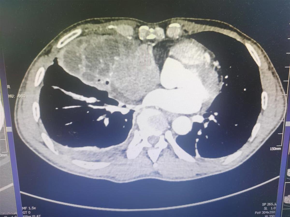 果然,CT影像下,陈师傅的右肺有大面积低密度区显示,右肺支气管有狭窄,右肺中叶实变明显。该院胸外科参与会诊后认为,可先进行气管镜探查,清理气道分泌物,之后,在控制炎症后,择机进行手术处理。