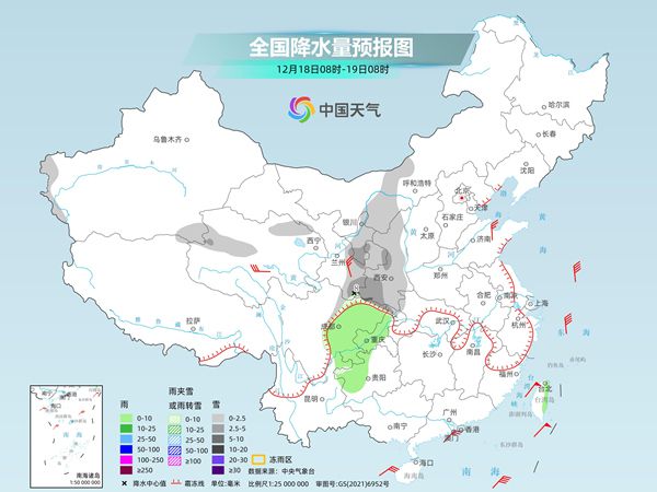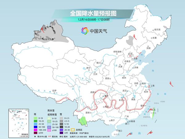 后天,西北地区东部一带降水有所发展增多。预计,西北地区东部、内蒙古河套地区、新疆南疆西部山区、青海西部和东北部等地部分地区有小到中雪或雨夹雪,局地大雪。西南地区东部、台湾岛东部等地部分地区有小雨。