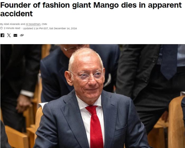 据报道,Mango公司首席执行官鲁伊斯在一份声明中表示,非常遗憾地宣布安迪克意外去世,他是Mango的非执行董事长兼创始人。