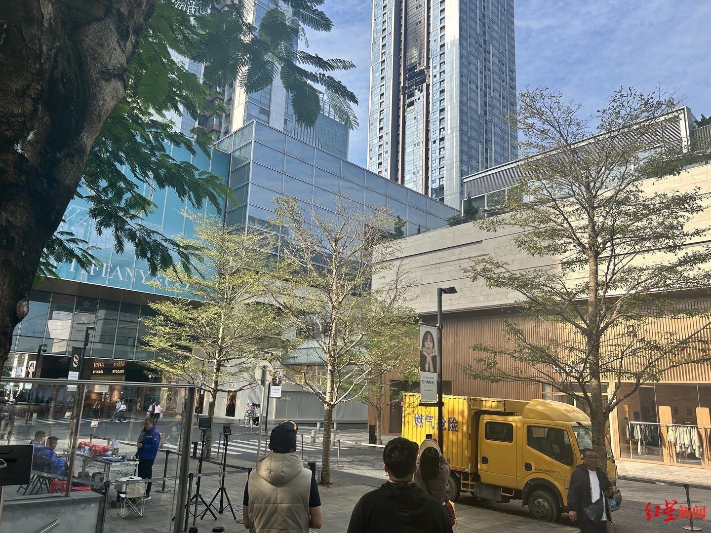 12日下午,悦府华润物业公司在万象城一楼开辟出一处业主咨询等待区,物业、社区街道等工作人员在现场登记小区出入情况。不少业主刚从外地赶回查看房屋情况,他们被告知,由于1栋还在挨户进行消防排查,断电断气,暂时还无法进入。在物业安排下,他们被临时转移到附近的酒店居住。