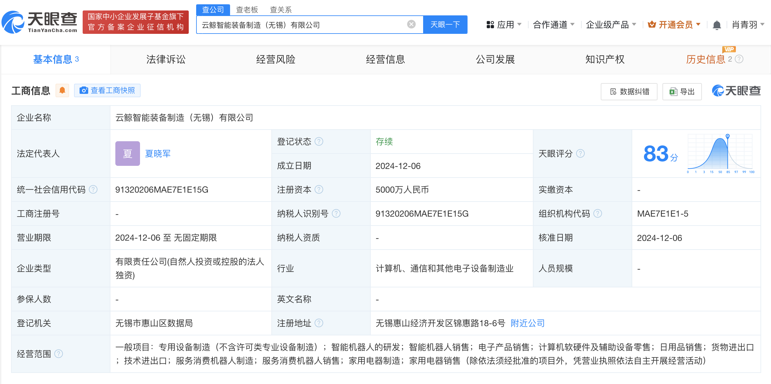天眼查App显示,近日,云鲸智能装备制造(无锡)有限公司成立,法定代表人为夏晓军,注册资本5000万人民币,经营范围含智能机器人的研发、智能机器人销售、计算机软硬件及辅助设备零售、技术进出口、服务消费机器人制造、服务消费机器人销售等。股东信息显示,该公司由云鲸智能创新(深圳)有限公司全资持股。