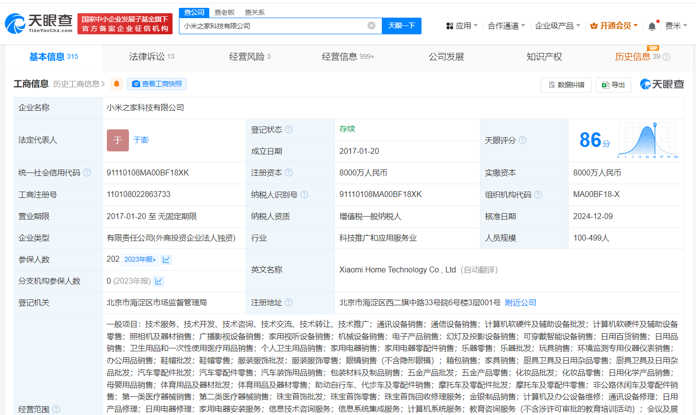 小米之家科技有限公司成立于2017年1月,注册资本8000万人民币,经营范围含通讯设备销售、通信设备销售、计算机软硬件及辅助设备批发、计算机软硬件及辅助设备零售、鞋帽批发、摩托车及零配件批发等,由小米通讯技术有限公司全资持股。据媒体报道,近日,小米集团副总裁马骥已离职,消息引发多方关注。