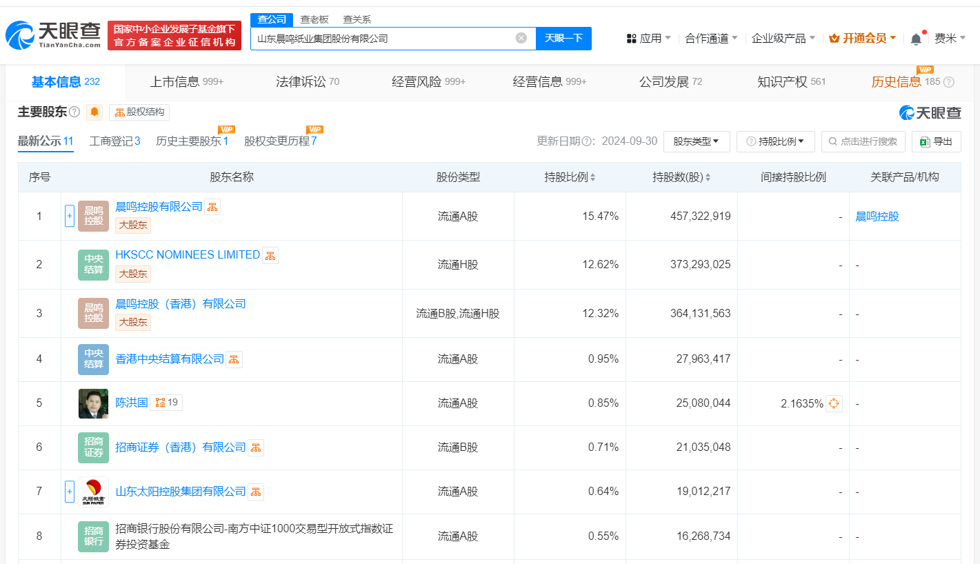 天眼查法律诉讼信息显示,近日,晨鸣纸业(000488)新增一则股权冻结信息,股权被执行的企业为上海衡峥创业投资中心(有限合伙),冻结股权数额2000万人民币,冻结期限自2024年12月3日至2027年12月2日,执行法院为山东省泰安市岱岳区人民法院。