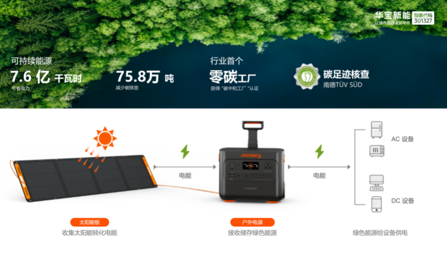 华宝新能旗下“Jackery电小二”品牌的16款产品成功通过国际权威第三方认证机构TÜV南德的严苛考验,获得产品碳足迹核查认证。据统计数据显示,截至2024年上半年,华宝新能已售出的太阳能板累计为全球用户节约了约7.6亿度发电量,减少碳排放高达75.8万吨。