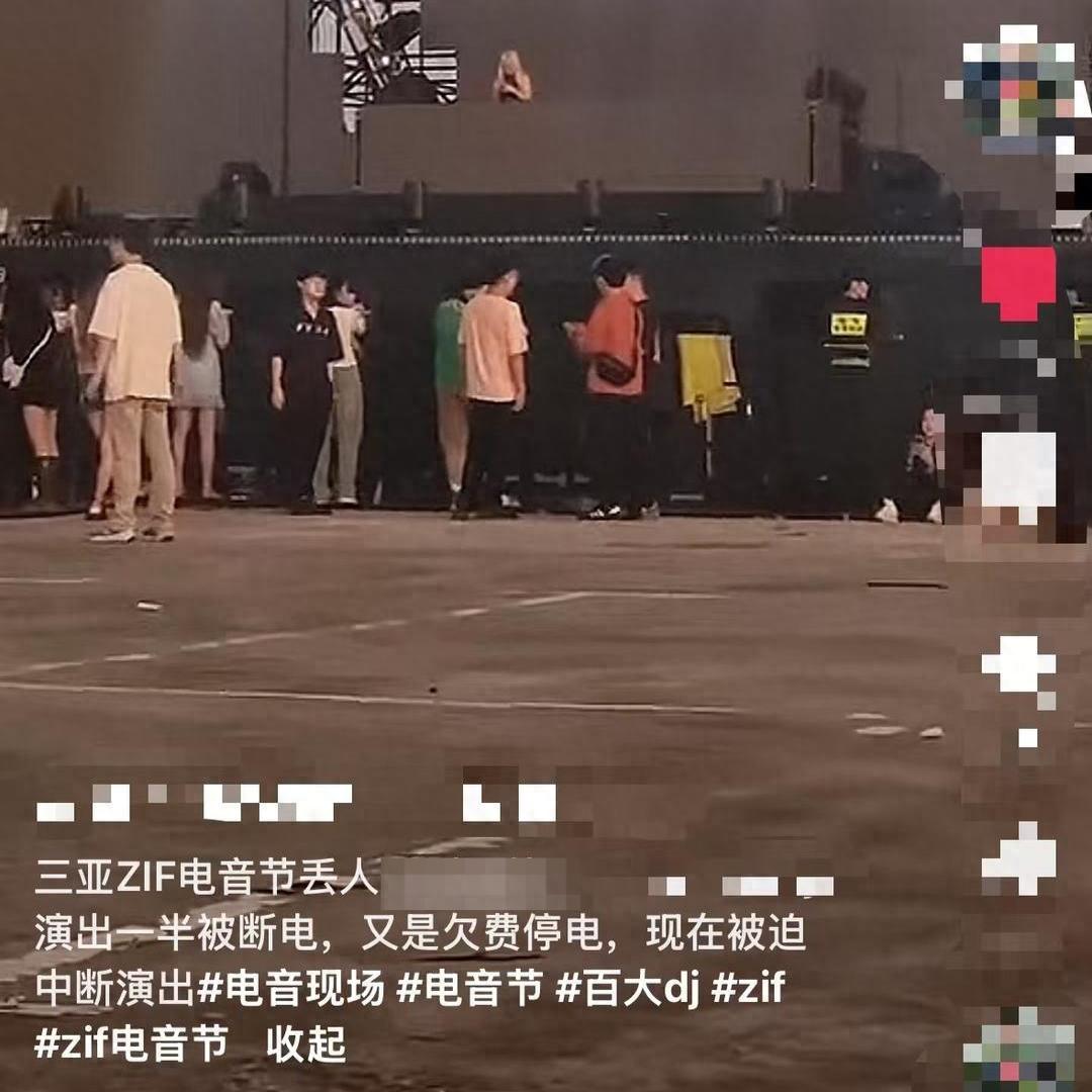 近日,有网友发布信息称,12月1日在海南三亚举行的ZIF电音节遭遇突发情况;现场观众寥寥无几,演出开始时间较预计的时间推迟约2小时;演出开始后,现场又突然断电导致演出中断。