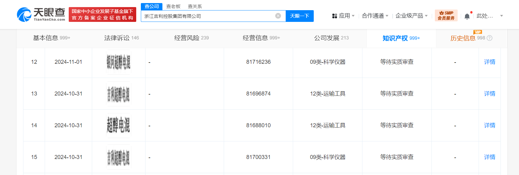 天眼查知识产权信息显示,近日,浙江吉利控股集团有限公司申请注册“超醇电混”“吉利超醇电混”“银河超醇电混”商标,国际分类为运输工具、科学仪器,当前商标状态均为等待实质审查。
