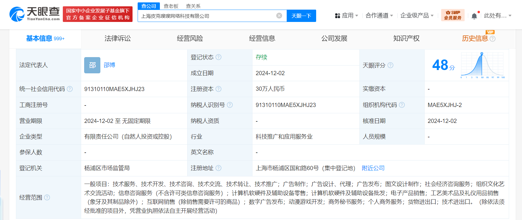 天眼查App显示,近日,上海皮克嗖嗖网络科技有限公司成立,法定代表人为邵博,注册资本30万人民币,经营范围含社会经济咨询服务、组织文化艺术交流活动、信息咨询服务、计算机软硬件及辅助设备零售、计算机软硬件及辅助设备批发、电子产品销售、互联网销售、动漫游戏开发等。股东信息显示,该公司由B站关联公司上海幻电信息科技有限公司以及邵博共同持股。