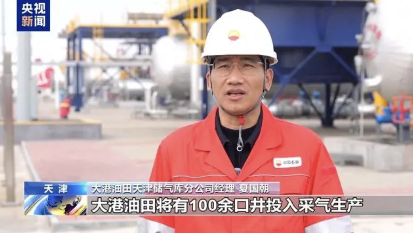 大港油田天津储气库分公司经理 夏国朝:极寒天气下,大港油田将有100余口井投入采气生产,冬季日调峰能力有望突破3500万立方米。