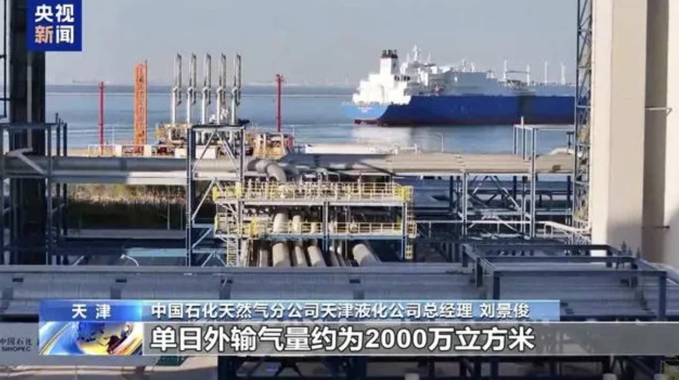 中国石化天然气分公司天津液化公司总经理 刘景俊:目前,天津液化天然气接收站单日外输气量约为2000万立方米,高峰期外输能力可达5800万立方米,足以满足1.1亿户居民的冬季用气需求。