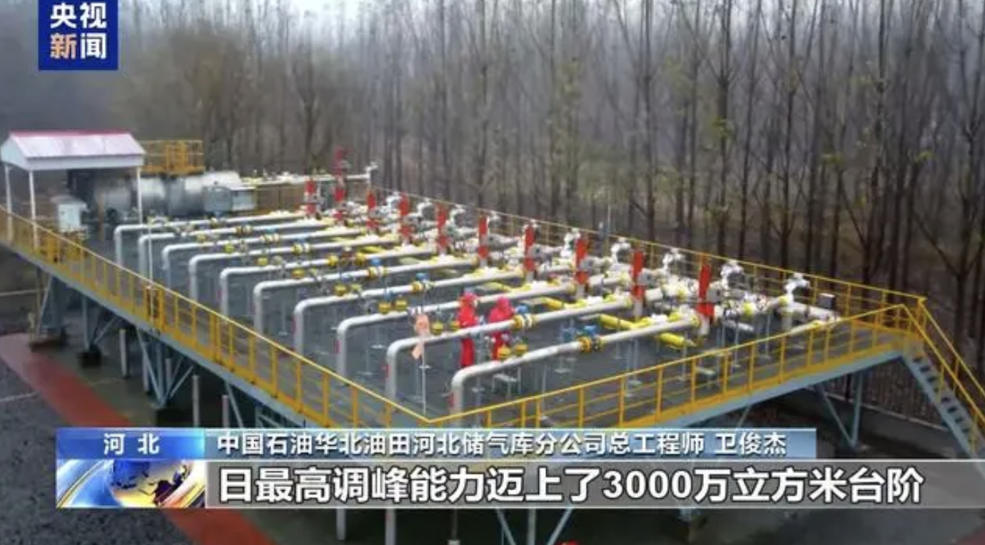 中国石油华北油田河北储气库分公司总工程师 卫俊杰:日最高调峰能力迈上了3000万立方米台阶,比去年提高15%。