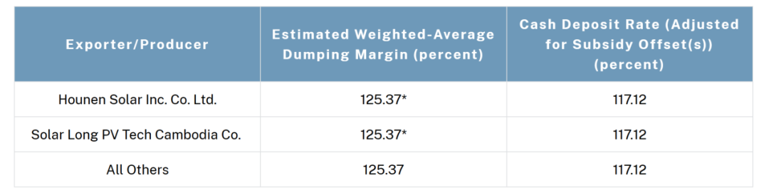 2024年4月,美国太阳能制造贸易联盟委员会向美国商务部提交“双反调查”(反倾销、反补贴)申请。5月,美国商务部启动对东南亚四国的“双反调查”。反补贴初裁结果早前已公布,相较最新公布的反倾销税率,反补贴税率较低。国内主要光伏企业的反补贴税率为0.81%—8.25%。