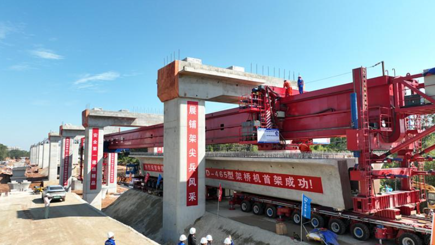 11月28日,全球首台千吨级多模式新能源架桥机“应龙号”在珠肇高铁江机段JJZQ-8标完成首架任务,标志着由中国中铁工业旗下中铁科工研制的全球首台千吨级新能源架桥机研制成功。