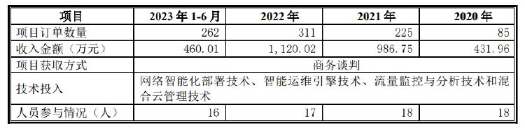 SD-WAN业务属于公司云服务业务,据公司首轮回复函,报告期内SD-WAN相关项目的具体情况如下表所示: