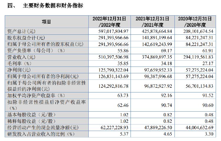 财务数据方面,据招股书,2020~2022年,天一恩华分别实现营收2.94亿元、3.75亿元、5.1亿元,分别实现净利润5728万元、9766万元和1.26亿元。