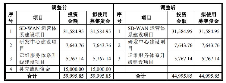 据公司招股书,天一恩华调整前拟募资近6亿元,其中3.16亿元用于SD-WAN运营体系建设项目。