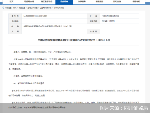 这家公募在任基金经理被“点名”。11月27日,四川证监局发布公告表示,李某彦于2015年5月11日入职某基金管理有限公司,自2020年10月30日至今担任公司所管理“信澳匠心臻选”的基金经理,自2020年12月30日至今担任公司所管理“信澳周期动力”的基金经理。