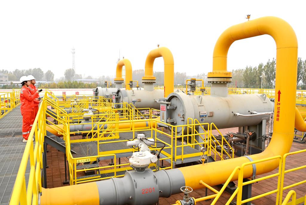 11月12日,永清联络压气站的工作人员在厂区内巡检。新华社记者王晓 摄