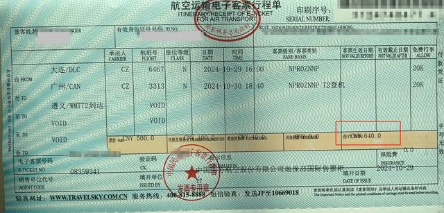 正义喵告诉红星资本局,经过查询后,她发现这实际上是联程机票;而且,根据南方航空开具的电子客票行程单,这张联程机票的实际出票价为640元。