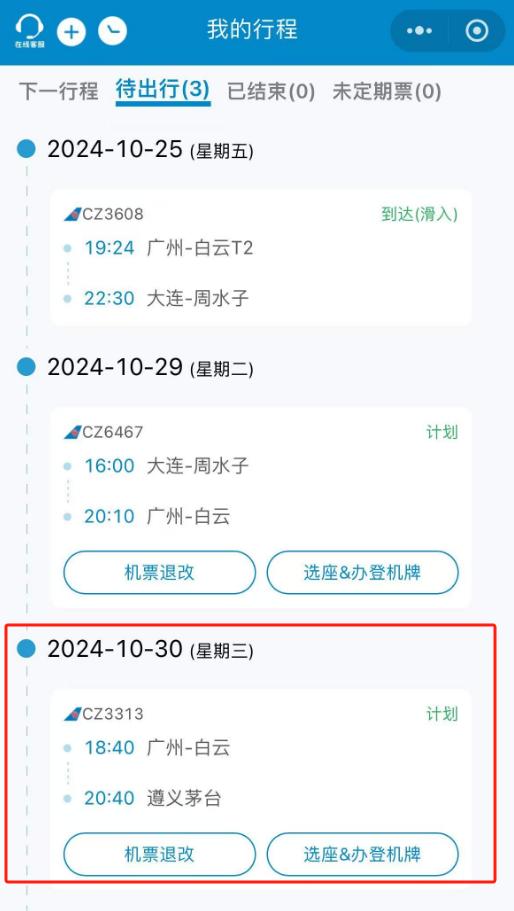 不过,正义喵通过南方航空的小程序发现:她的名下多了一个航段,是10月30日从广州白云国际机场飞往遵义茅台机场的CZ3313号航班。