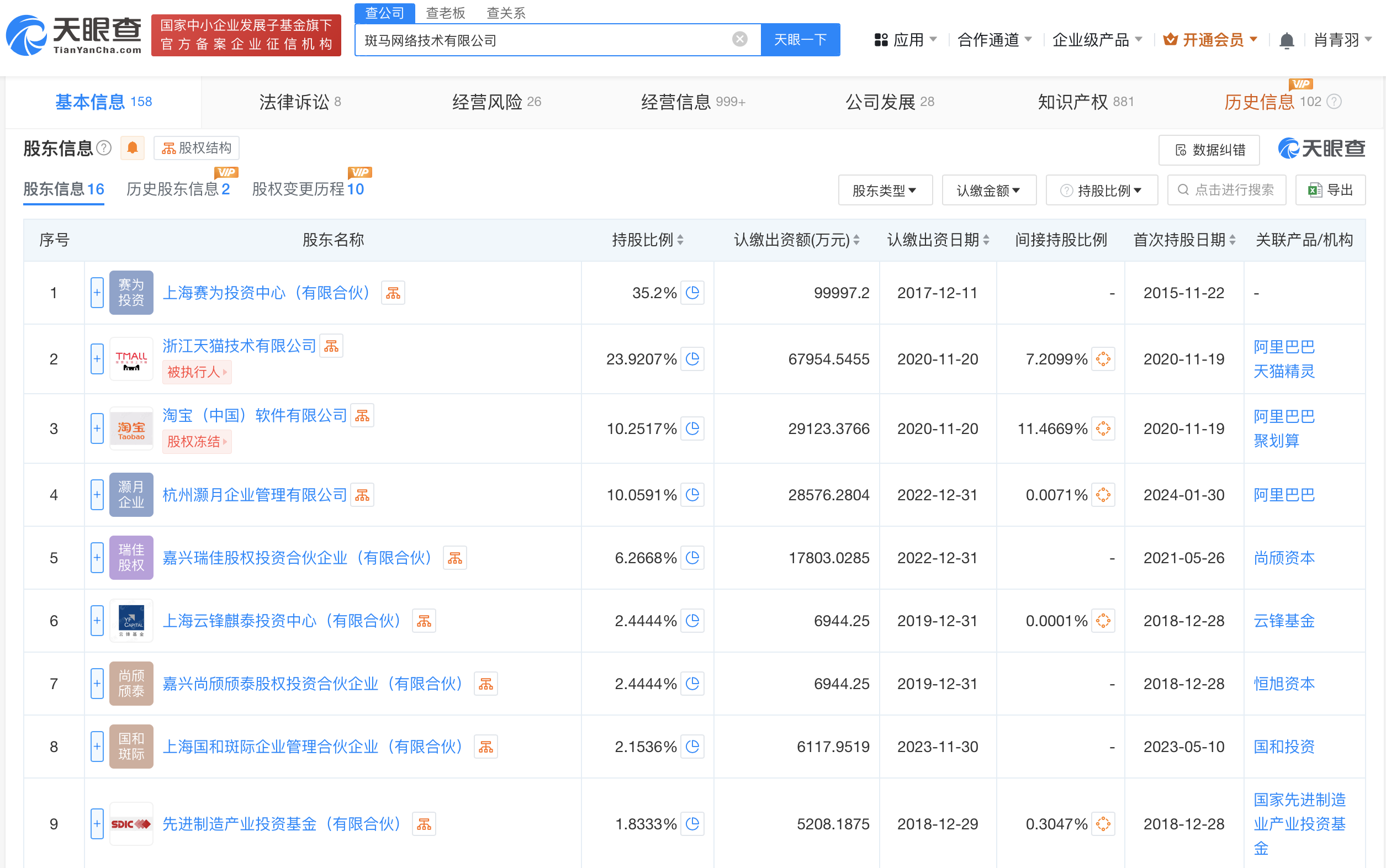 斑马网络技术有限公司成立于2015年11月,法定代表人为张建锋,经营范围含计算机网络科技、通信科技、电子科技领域内的技术开发、技术咨询、技术服务、技术转让等,由上海赛为投资中心(有限合伙)、浙江天猫技术有限公司、淘宝(中国)软件有限公司等共同持股。