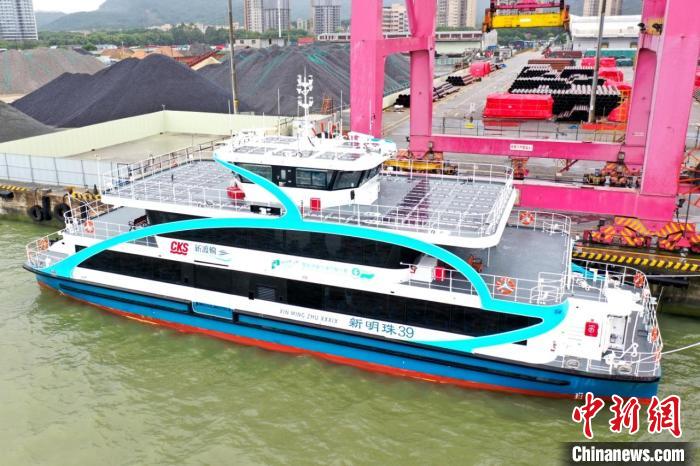 中新网广州11月21日电(记者 蔡敏婕)全国首艘整船采用国产碳纤维材料建造,纯电动力推进系统的客渡船“新明珠39”轮21日离开广州南沙货运码头,交付至香港进行测试,后续在香港维港投入使用。