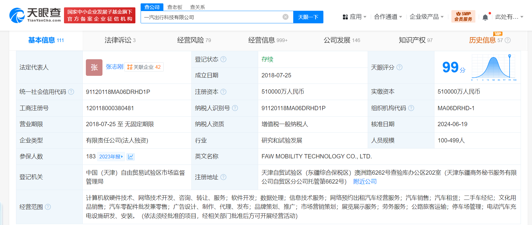 一汽出行科技有限公司成立于2018年7月,法定代表人为张志刚,注册资本51亿人民币,经营范围含计算机软硬件技术、网络技术开发、咨询、转让、服务,软件开发,数据处理,信息技术服务,汽车零配件批发兼零售等,由中国第一汽车集团有限公司全资持股。
