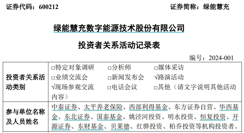 11月21日,上市公司绿能慧充(600212.SH)发布了《投资者关系活动记录表》,披露公司接待了中泰证券、太平养老保险、西部利得基金等多家投资机构调研,公司董秘张谦、子公司中创航空董事长黄海参与,并解答投资机构代表提问。