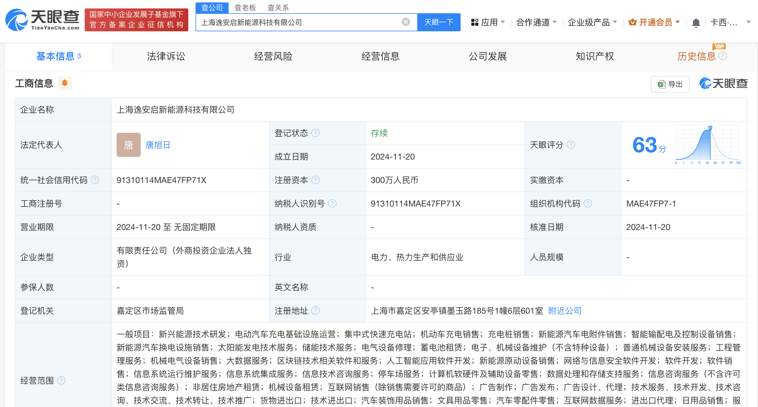 天眼查App显示,11月20日,上海逸安启新能源科技有限公司成立,法定代表人为唐旭日,注册资本300万人民币,经营范围含电动汽车充电基础设施运营、集中式快速充电站、充电桩销售、人工智能应用软件开发等。股权全景穿透图显示,该公司由北京逸安启新能源科技有限公司全资持股,后者由梅赛德斯一奔驰(中国)投资有限公司、华晨宝马汽车有限公司共同持股。