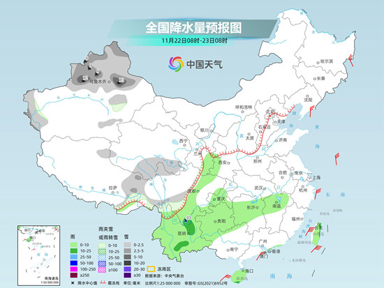 今明天,华南部分地区仍有明显降雨,西南地区也是降水频繁。后天,华南降雨减少、减弱,新疆北部雨雪发展。