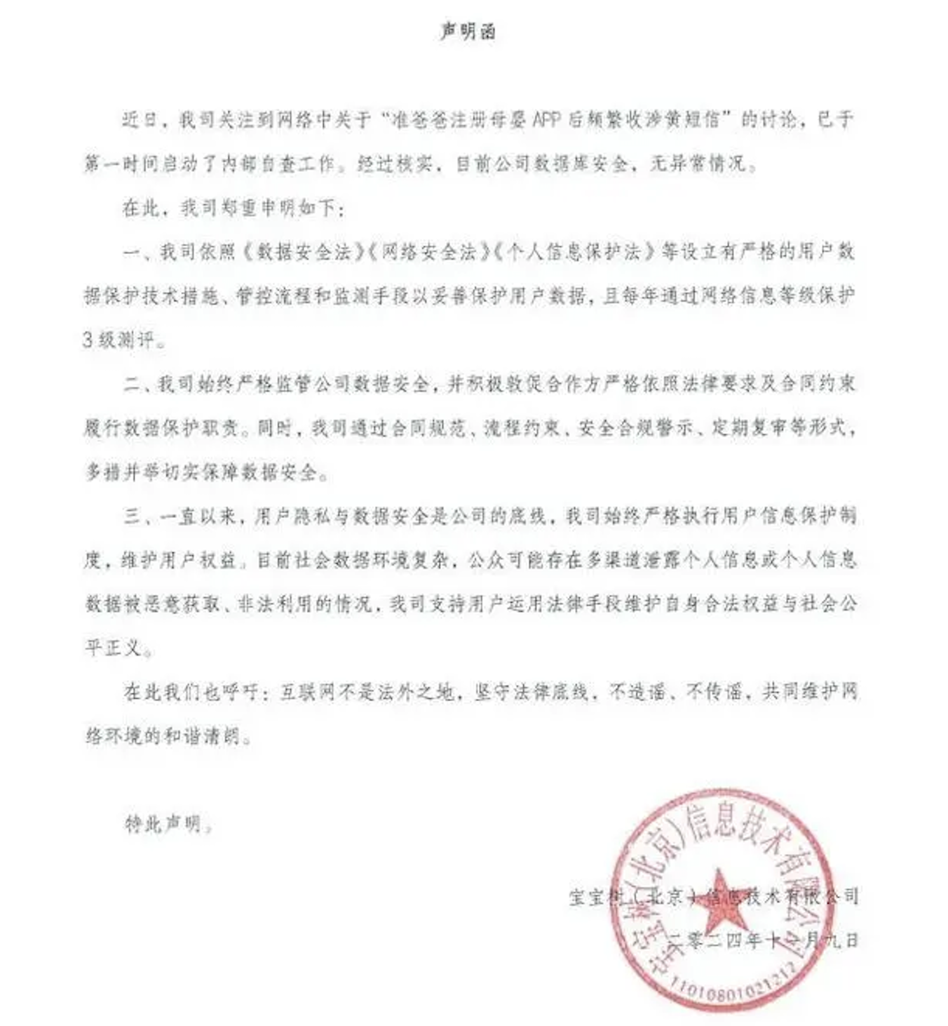 宝宝树声明函