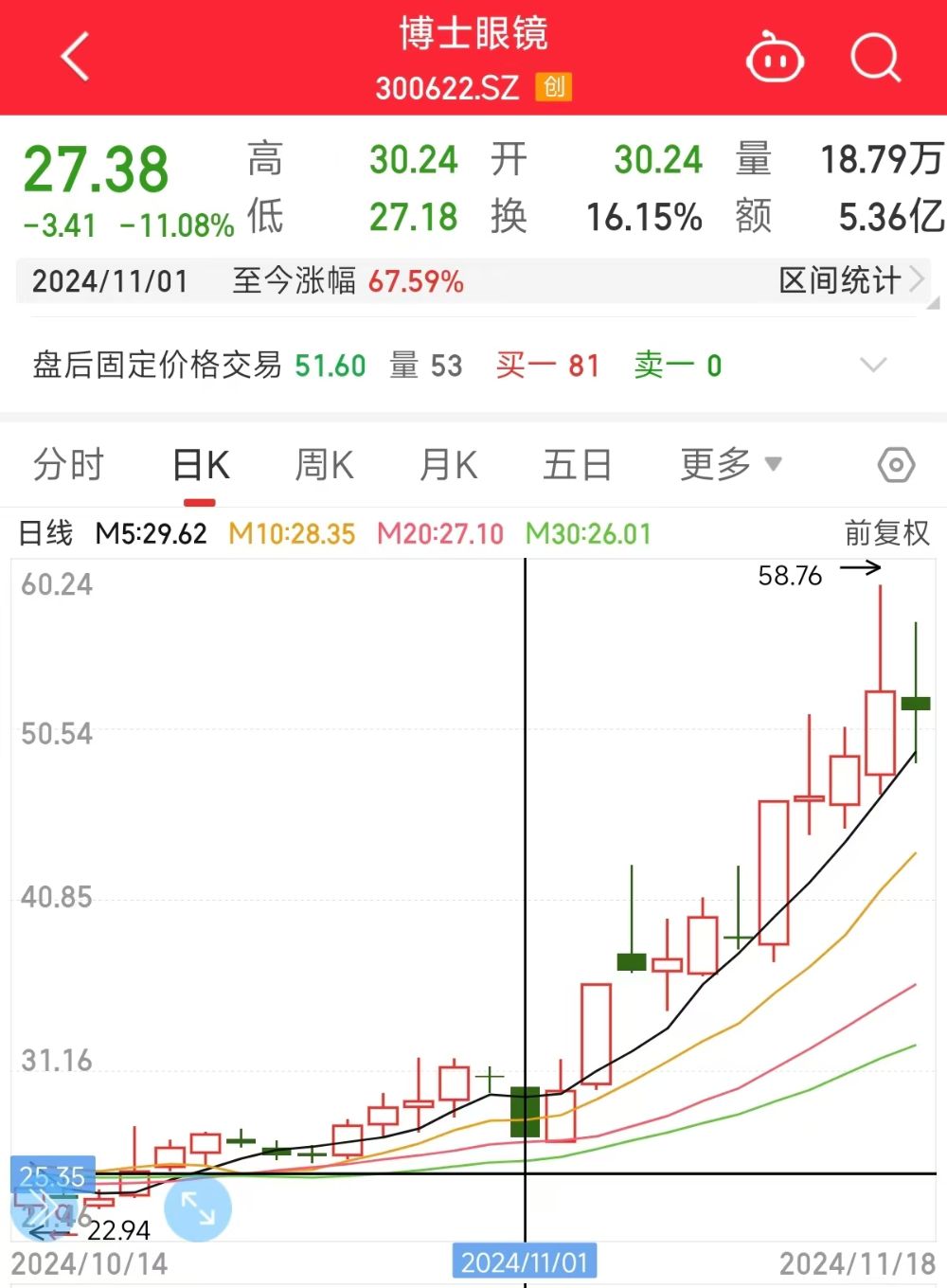 据了解,博士眼镜被市场普遍归为AI眼睛概念,近月以来股价持续上涨。同花顺iFinD数据显示,11月1日以来至今(11月8日收盘),该股累计涨幅为67.59%。