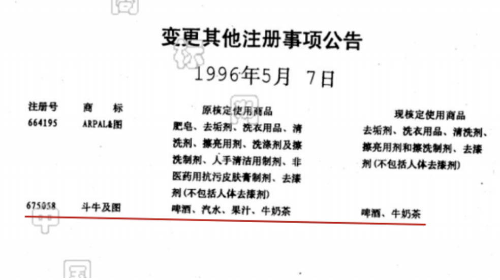 深圳中浩购买斗牛图案商标后变更了斗牛及图商标使用范围