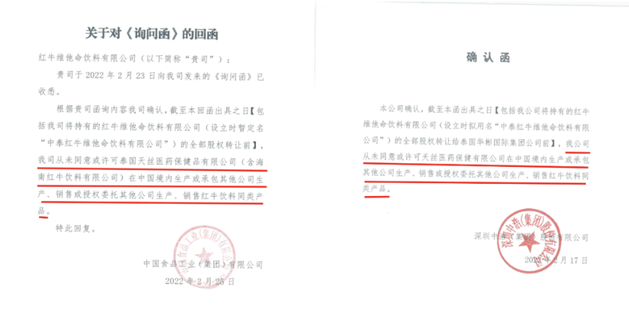 随着中国红牛迅速崛起,成为中国功能饮料巨头。2016年,泰国天丝即发动商标侵权诉讼,以商标侵权为名要求法院判决中国红牛停产、架空50年《协议书》约定的中国红牛独家经营权,此时50年《协议书》履行尚未过半,更为恶劣的是其通过撕毁合约、逃避50年《协议书》对泰国天丝经营的竞业限制,和中国红牛前总经理及有背景的资本合谋,抢夺华彬集团巨额投入、中国红牛耕耘近30年的市场。面对中国红牛出具的50年《协议书》原件,泰国天丝矢口否认签署过该协议,协议签署方中食公司、中浩公司均出具证明,承认《协议书》真实、有效,且从未授权泰国天丝在中国经营红牛饮料。