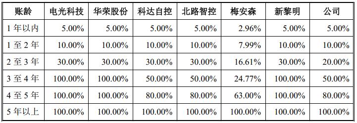 万泰股份回复函显示,对于2至3年的应收账款,万泰股份计提比例是20%,但6家可比公司中有5家计提比例为30%;对于3至4年的应收账款,有3家可比公司的计提比例是100%,但万泰股份计提比例是50%。