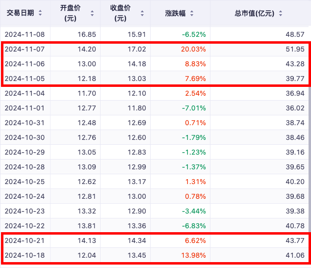 市场的一大质疑点在于,高澜股份股价在上述三人买入期间存在异动。二级市场上,高澜股份股价于10月18日上涨13.98%,10月21日上涨6.62%;11月5日、11月6日以及11月7日连续三个交易日内,其收盘价格涨幅偏离值累计超过30%,高澜股份还发布了股票交易异常波动的公告。
