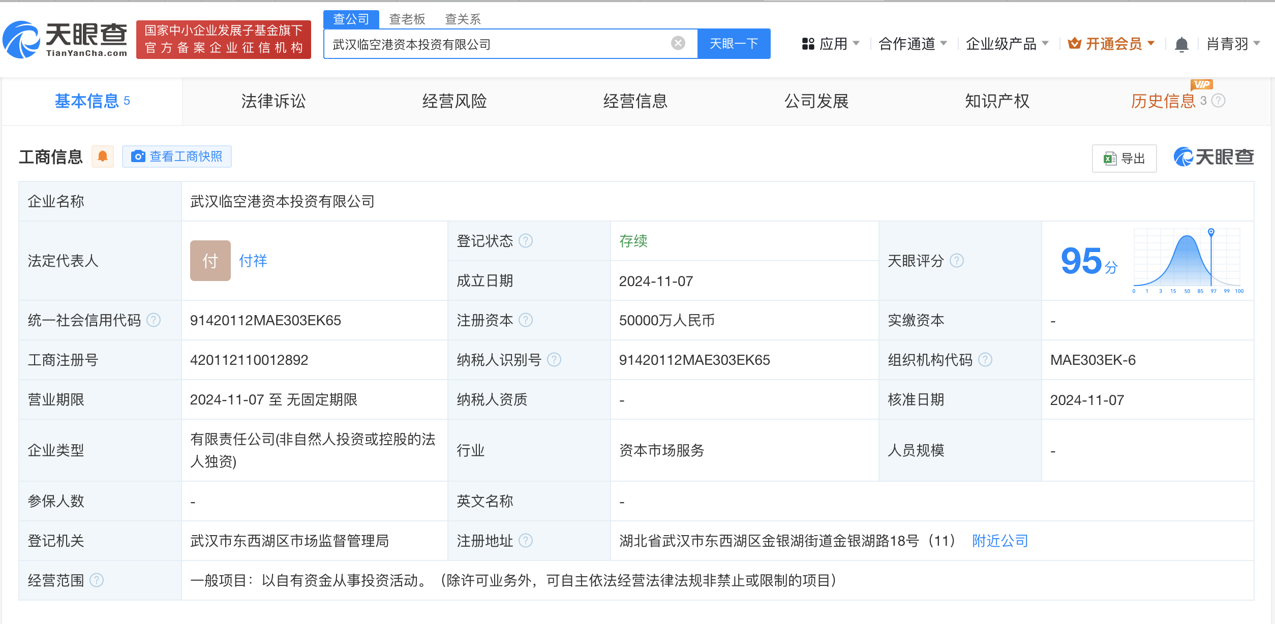 天眼查App显示,近日,武汉临空港资本投资有限公司成立,法定代表人为付祥,注册资本5亿人民币,经营范围为以自有资金从事投资活动。股东信息显示,该公司由武汉临空港国有资本控股集团有限公司全资持股。