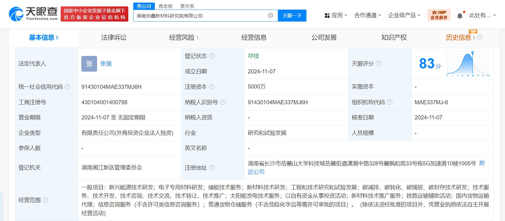 天眼查App显示,近日,湖南协鑫新材料研究院有限公司成立,法定代表人为张强,注册资本5000万人民币,经营范围含新兴能源技术研发、电子专用材料研发、储能技术服务、新材料技术研发、工程和技术研究和试验发展、太阳能发电技术服务、以自有资金从事投资活动、新材料技术推广服务等。股东信息显示,该公司由协鑫集团有限公司全资持股。