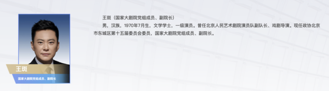 近日,国家大剧院官网“院领导”栏目更新信息显示,知名演员王斑已经调任国家大剧院党组成员、副院长。